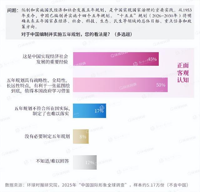 从“十四五”圆满收官,到“十五五”良好开局,中国用连续稳定的中长期规划,把现代化蓝图一步步变为现实。在“中国国际形象全球调查”中,超过3/4的国外民众对中国编制并实施五年规划持客观积极评价,45%认可“这是中国实现经济社会发展的重要经验”,50%认同五年规划“值得本国政府学习借鉴”。持客观积极评价的比例在金砖国家、中东国家、东盟国家、非洲国家超过八成。调查还显示,国外民众普遍看好中国未来的经济前景,接近九成的受访者表示对未来10年中国经济的持续增长有信心。