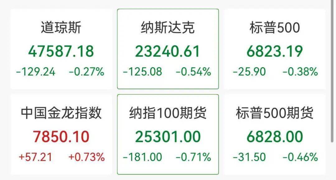 12月1日,三大指数集体低开,截至北京时间23时,道琼斯指数跌0.27%,标普500指数跌0.38%,纳斯达克综合指数跌0.54%。