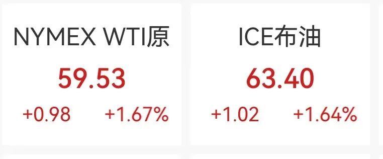 国际油价上涨,美油、布油均涨超1.6%。