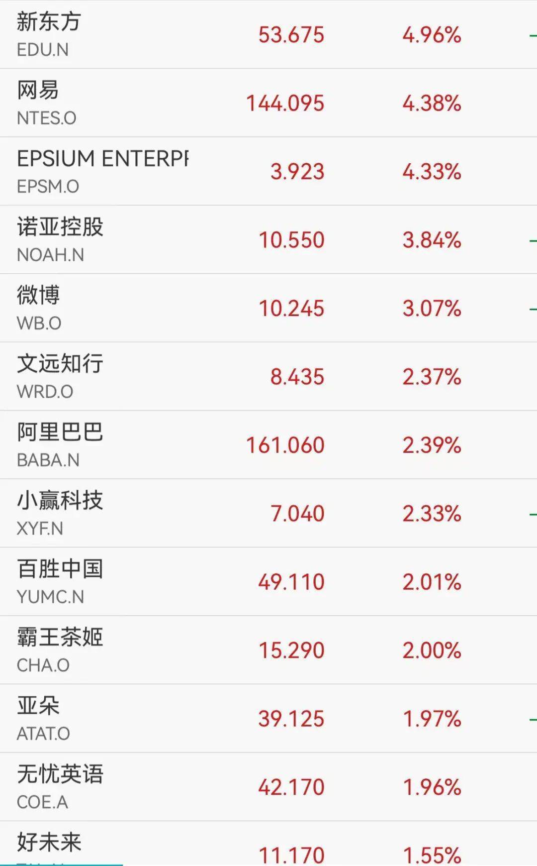 纳斯达克中国金龙指数微涨0.7%,热门中概股多数上涨,新东方涨近5%,网易涨超4%,阿里涨超2%,百度涨超1%。